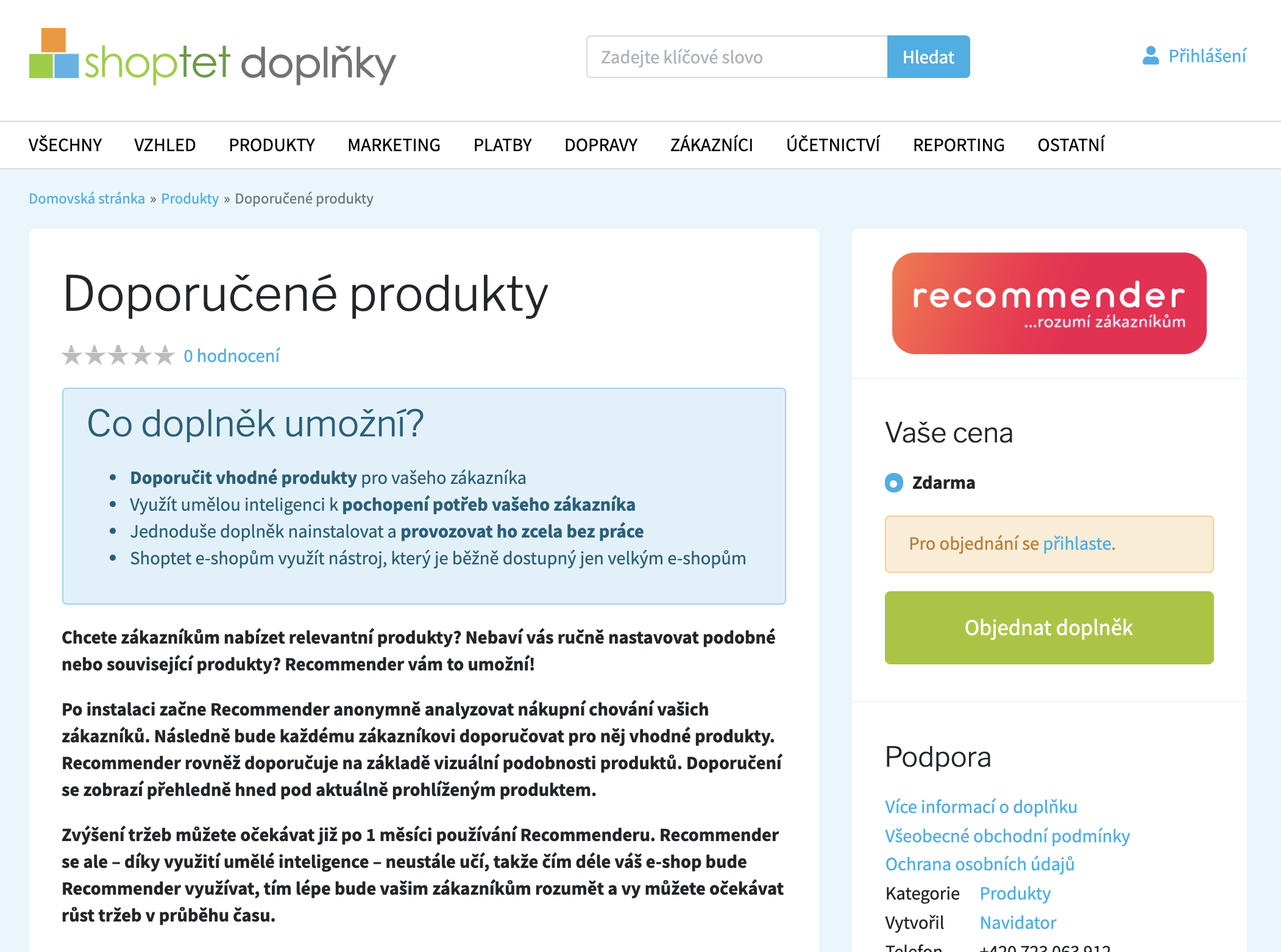 Jak probíhá instalace doplňku Recommender na Shoptetu?